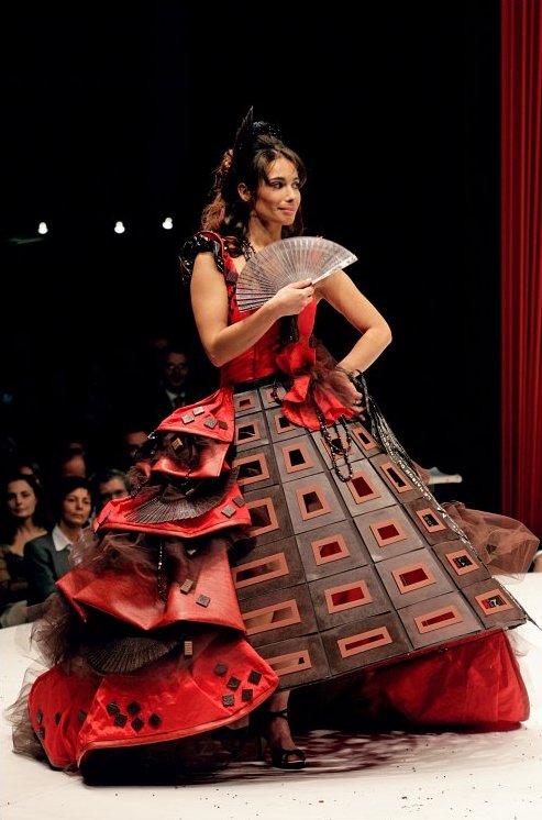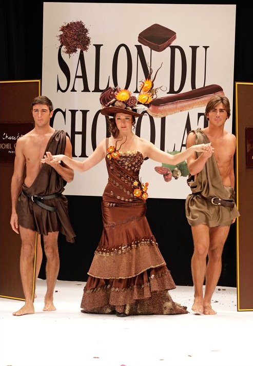 Le traditionnel défilé des robes en chocolat, portées par des personnalités a ouvert le 15ème Salon du Chocolat, mardi 13 octobre 2009, en soirée.