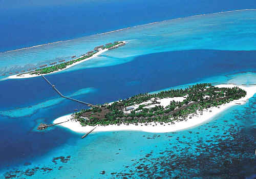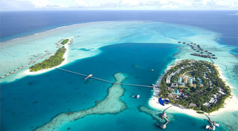 Cet hôtel de luxe est situé sur l’île de Rangali au bord d’une superbe plage de sable fin. Il est installé sur deux îles différentes reliées par un pont entourées d’un lagon émeraude.