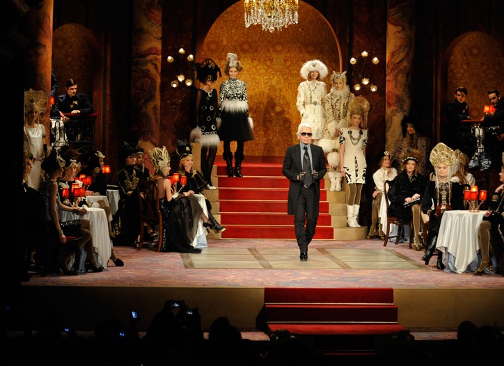 Karl Lagerfeld a présenté cette semaine la pré-collection Chanel automne-hiver 2009 sur le thème Paris-Moscou. Au menu de ce défilé d’inspiration orientale : manteaux, tailleurs uniformes, couvre-chefs de toutes forme, cuissardes, fourrure et broderies de bijoux.